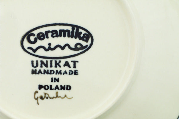 This is a Polish pottery Unikat (Signature) Plate, which means that it has been hand painted with both sponges and brushes and it is signed by the artist who painted it. Unikat pieces are the most intricate works of art. Larger Unikat items take hours of very careful work to finish.