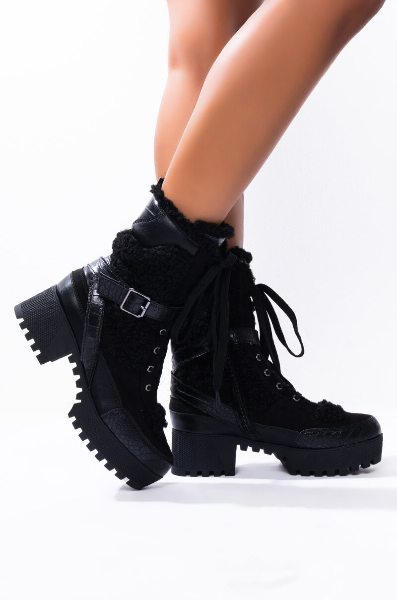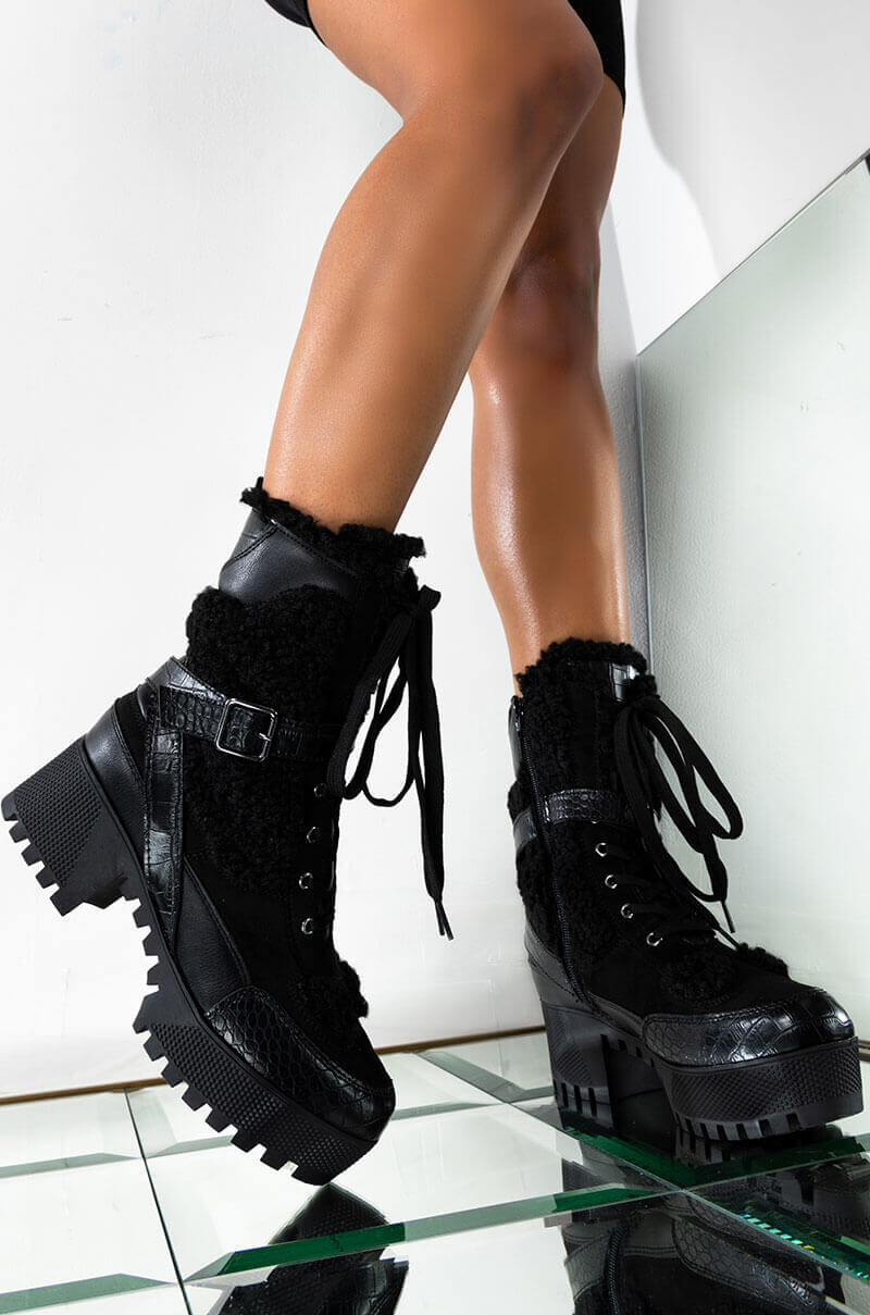 • Padded collar, lace-up front