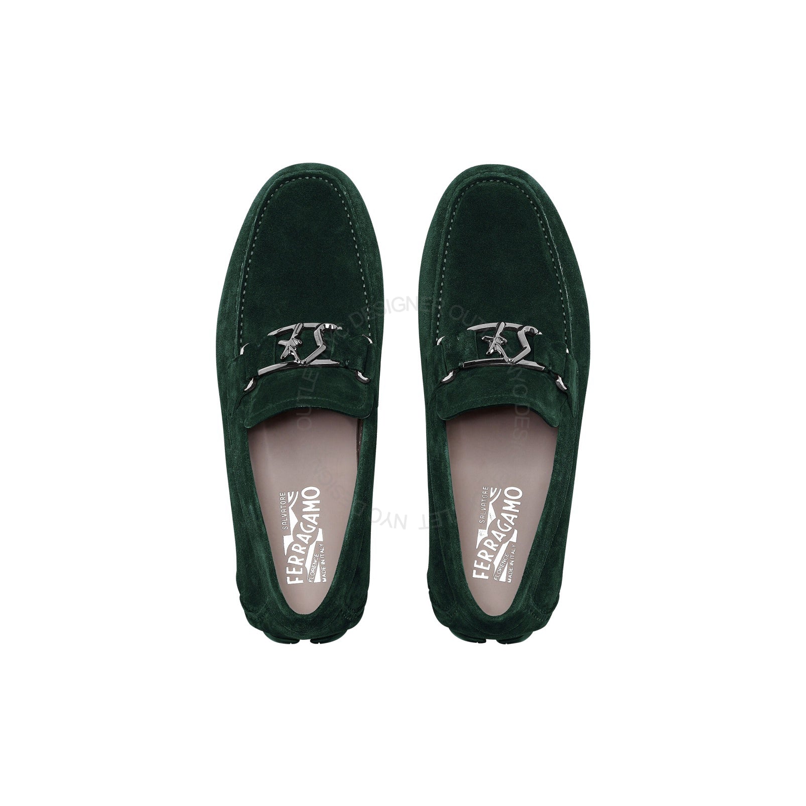 Elevate your style with our Ferragamo Peter Drivers. Crafted with green suede, these shoes offer comfort and sophistication. Perfect for a day of meetings or a night out, these drivers are a must-have for every wardrobe. Upgrade your look and feel with Ferragamo Peter Drivers!