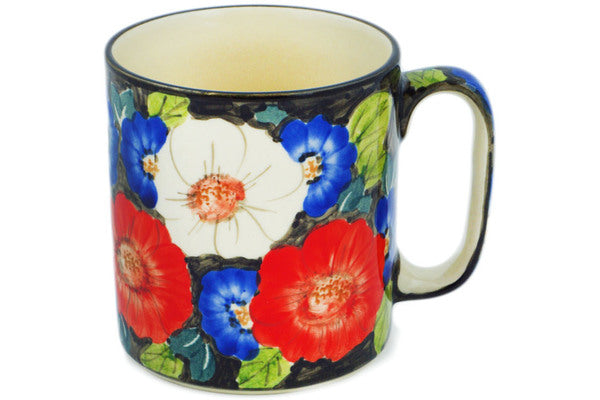 This Polish Pottery Mug is handmade and handpainted by the Kaleta Ceramics factory in Boleslawiec, Poland. Manufacturer item number H4660N. It is 3¾" high and measures 4¾" by 3½". The capacity of this Mug is 13.12 oz (brimful) and it weighs 0.8 lbs. It is part of the White Provence Collection.