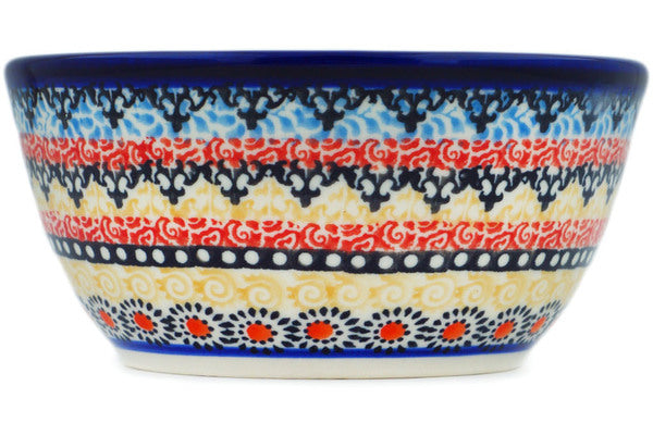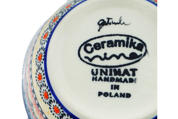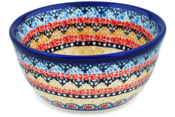 This Polish Pottery Bowl is handmade and handpainted by the Kaleta Ceramics factory in Boleslawiec, Poland. Manufacturer item number H4661N. It is 2¼" high and measures 5¼" by 5¼". The capacity of this Bowl is 12.31 oz (brimful) and it weighs 0.8 lbs. It is part of the Hot Summer Collection.