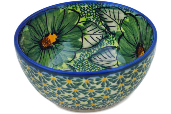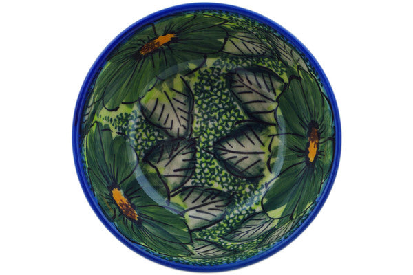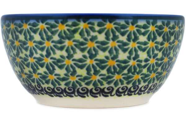 This Polish Pottery Bowl is handmade and handpainted by the Dalia factory in Boleslawiec, Poland. Manufacturer item number H7320N. It is 2½" high and measures 5¼" by 5¼". The capacity of this Bowl is 15.76 oz (brimful) and it weighs 0.7 lbs. It is part of the Green Fantasy Collection.