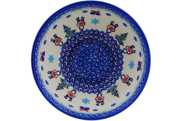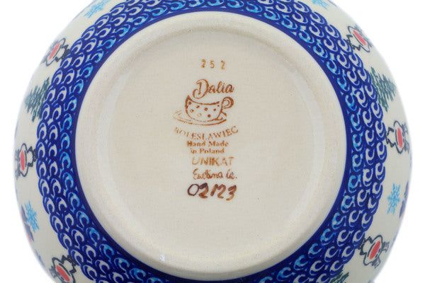 This Polish Pottery Bowl is handmade and handpainted by the Dalia factory in Boleslawiec, Poland. Manufacturer item number H7345N. It is 3" high and measures 6¼" by 6¼". The capacity of this Bowl is 23.20 oz (brimful) and it weighs 1.2 lbs. It is part of the Frosty Bliss Collection.
