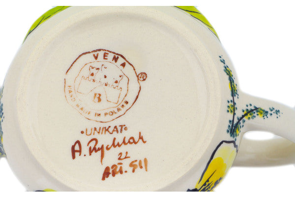 This Polish Pottery Watering Can is handmade and handpainted by the Vena factory in Boleslawiec, Poland. Manufacturer item number H3951N. It is 4" high and measures 8½" by 4¼". The capacity of this Watering Can is 22.79 oz (brimful) and it weighs 1.0 lbs. It is part of the Hawaii Sunshine Collection.