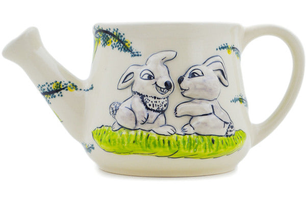 This is a Polish pottery Unikat (Signature) Watering Can, which means that it has been hand painted with both sponges and brushes and it is signed by the artist who painted it. Unikat pieces are the most intricate works of art. Larger Unikat items take hours of very careful work to finish.